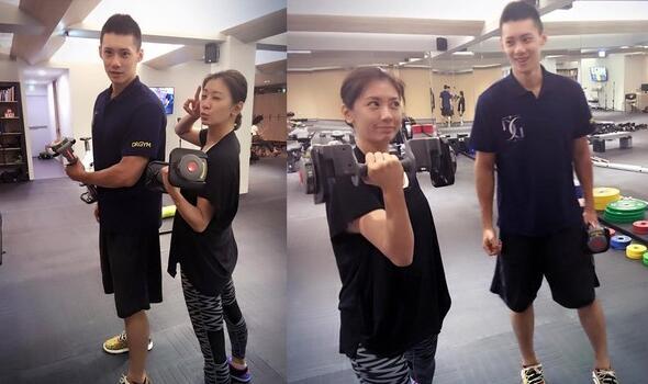 贾静雯15日晒出和男健身教练的合照,只见她单手举着哑铃,一脸轻松地做出俏皮表情,笑称是应咘咘要求,只好投身这么严格的教练,还透露咘咘很久没见到帅教练,意外让网友发现“原来咘咘的菜长这样~”,不忘开玩笑损修杰楷:“爸爸又要吃醋了。”